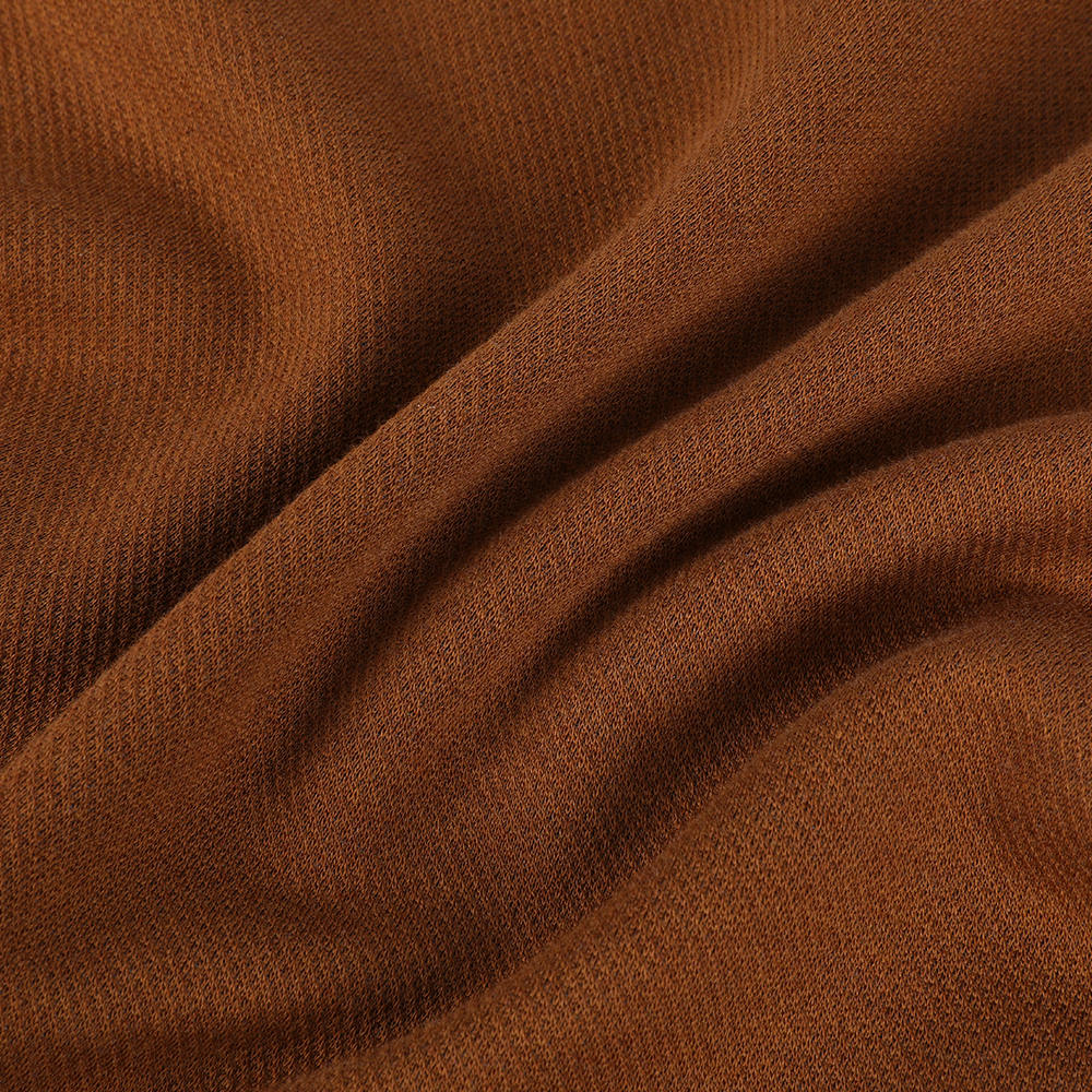 ইন্টারলক ডাবল-পার্শ্বযুক্ত জ্যাকার্ড আরামদায়ক স্প্যানডেক্স বোনা ফ্যাব্রিক মহিলাদের জন্য ফ্যাব্রিক পারফরম্যান্স এবং নান্দনিকতার দ্বৈত অপ্টিমাইজেশন অর্জন করেছে সাবধানে অনুপাত এবং উন্নত প্রযুক্তির মাধ্যমে। ফ্যাব্রিক রচনাটি 54% সুতি, 39% পলিয়েস্টার এবং 7% ব্রোকেড-মোড়ানো স্প্যানডেক্স দ্বারা গঠিত এবং তিনটির সংমিশ্রণটি ফ্যাব্রিককে অনন্য পারফরম্যান্সের সুবিধা দেয়। একটি প্রাকৃতিক ফাইবার হিসাবে তুলো, ভাল আর্দ্রতা শোষণ, শ্বাস প্রশ্বাস এবং ত্বক-বন্ধুত্বপূর্ণতা সরবরাহ করে, পরিধানের সময় আরাম নিশ্চিত করে। পলিয়েস্টার সংযোজন ফ্যাব্রিকের পরিধানের প্রতিরোধের, কুঁচকানো প্রতিরোধের এবং স্থিতিস্থাপক পুনরুদ্ধারকে বাড়িয়ে তোলে, পোশাকগুলি যত্নের জন্য সহজ করে তোলে এবং বিকৃত হওয়ার সম্ভাবনা কম করে তোলে। ব্রোকেড-মোড়ানো স্প্যানডেক্স ডিজাইনটি কেবল স্প্যানডেক্সের ভাল স্থিতিস্থাপকতা বজায় রাখে না তবে কার্যকরভাবে স্প্যানডেক্সের এক্সপোজারকেও বাধা দেয়, ফ্যাব্রিকের স্থায়িত্ব এবং রূপচর্চা স্থিতিশীলতা আরও উন্নত করে। কারুশিল্পের ক্ষেত্রে, উন্নত ডাবল-পার্শ্বযুক্ত জ্যাকার্ড প্রযুক্তির ব্যবহার ফ্যাব্রিককে উভয় পক্ষের সূক্ষ্ম নিদর্শনগুলি উপস্থাপন করে, ভিজ্যুয়াল লেয়ারিংকে বাড়িয়ে তোলে। সূক্ষ্ম বুনন কাঠামোটি ফ্যাব্রিককে ভাল নমনীয়তা এবং শ্বাস প্রশ্বাস দেয়, মানব দেহের বক্ররেখার পরিবর্তনের সাথে খাপ খাইয়ে নিতে পারে এবং একটি উপযুক্ত তবে শক্ত-পরা অভিজ্ঞতা সরবরাহ করে না। একই সময়ে, বোনা কাঠামোর শক্ত বিন্যাসটি ফ্যাব্রিকের উষ্ণতা ধরে রাখার উন্নতি করে, এটি বিভিন্ন জলবায়ু পরিস্থিতিতে পরার জন্য উপযুক্ত করে তোলে