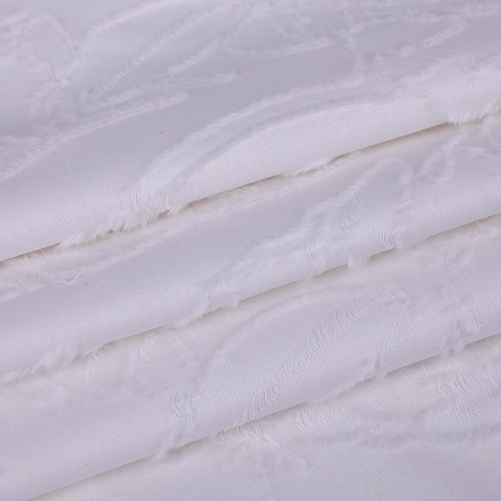 জ্যাকার্ড ট্রিম থ্রেড শ্বাস প্রশ্বাসের বিলাসবহুল লেডি বোনা ফ্যাব্রিক, 90% উচ্চমানের তুলা এবং 10% সূক্ষ্ম সিল্কের সাথে মিশ্রিত। এই অনন্য অনুপাতটি ফ্যাব্রিকের কার্যকারিতা অনুকূল করতে, ভাল শ্বাস প্রশ্বাস এবং আর্দ্রতা শোষণ নিশ্চিত করার জন্য এবং ফ্যাব্রিককে একটি অনন্য বিলাসবহুল স্পর্শ দেওয়ার জন্য ডিজাইন করা হয়েছে। ফ্যাব্রিক ডিজাইনে, আমরা একটি সূক্ষ্ম জ্যাকার্ড প্রান্ত প্রক্রিয়া ব্যবহার করি এবং চতুরতার সাথে ম্যানুয়াল দক্ষতার মাধ্যমে ফ্যাব্রিকের মধ্যে জটিল নিদর্শনগুলিকে সংহত করি। এই নকশাটি কেবল ফ্যাব্রিকের ভিজ্যুয়াল এফেক্টকে বাড়িয়ে তোলে না তবে এটিকে অনন্য শৈল্পিক মান এবং নান্দনিক তাত্পর্যও দেয়। একই সময়ে, একটি বোনা কাঠামোর ব্যবহার ফ্যাব্রিককে ভাল স্থিতিস্থাপকতা এবং পুনরুদ্ধার করে তোলে, যা শরীরের আকারকে পুরোপুরি ফিট করতে পারে এবং স্বাচ্ছন্দ্য এবং সৌন্দর্যের জন্য মহিলাদের দ্বৈত চাহিদা পূরণ করতে পারে। পারফরম্যান্সের ক্ষেত্রে, এই ফ্যাব্রিকটি ভাল সম্পাদন করে। সুতির ফাইবারের সংযোজন ফ্যাব্রিককে ভাল আর্দ্রতা শোষণ এবং ঘামের কর্মক্ষমতা রাখে, যা উচ্চ-তাপমাত্রার পরিবেশেও ত্বককে শুষ্ক এবং আরামদায়ক রাখতে পারে। সিল্কের সূক্ষ্ম দীপ্তি ফ্যাব্রিকটিতে কমনীয়তা এবং বিলাসিতার একটি স্পর্শ যুক্ত করে এবং সামগ্রিক জমিনকে বাড়িয়ে তোলে। এছাড়াও, ফ্যাব্রিকটিতে ভাল পরিধান প্রতিরোধ এবং কুঁচকানো প্রতিরোধেরও রয়েছে, যা প্রতিদিনের পরিধান এবং ধোয়ার পরীক্ষা সহ্য করতে পারে এবং ফ্যাব্রিকের মূল দীপ্তি এবং টেক্সচার বজায় রাখতে পারে